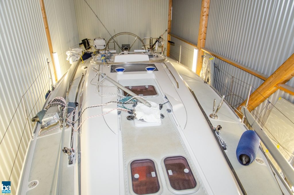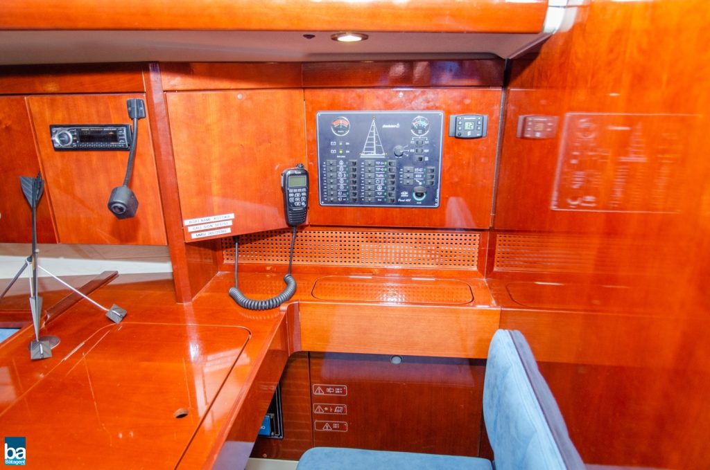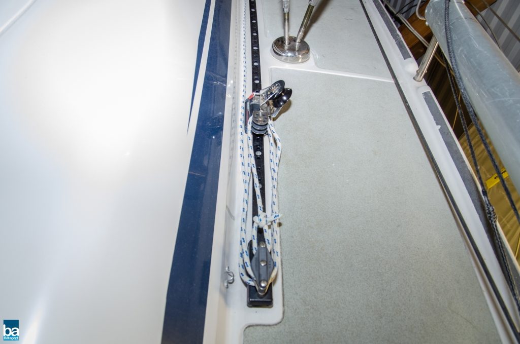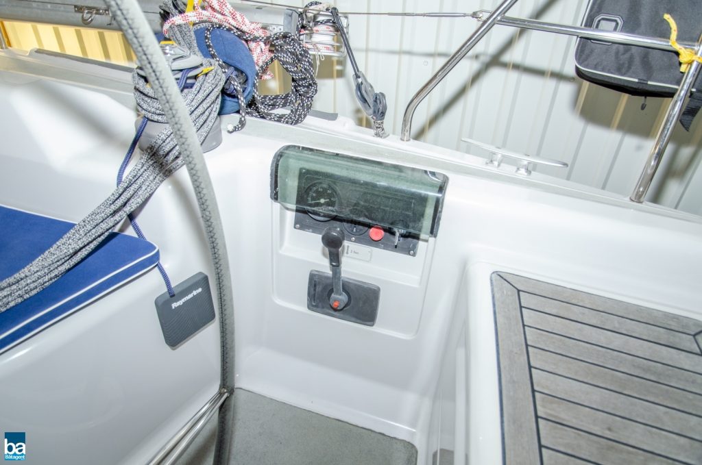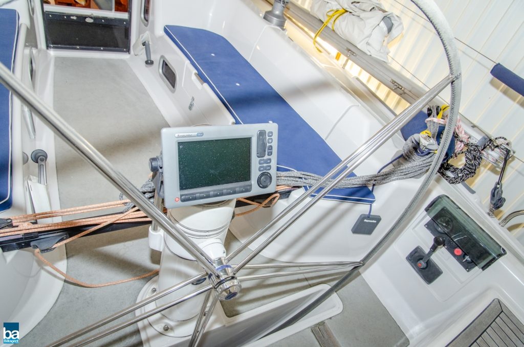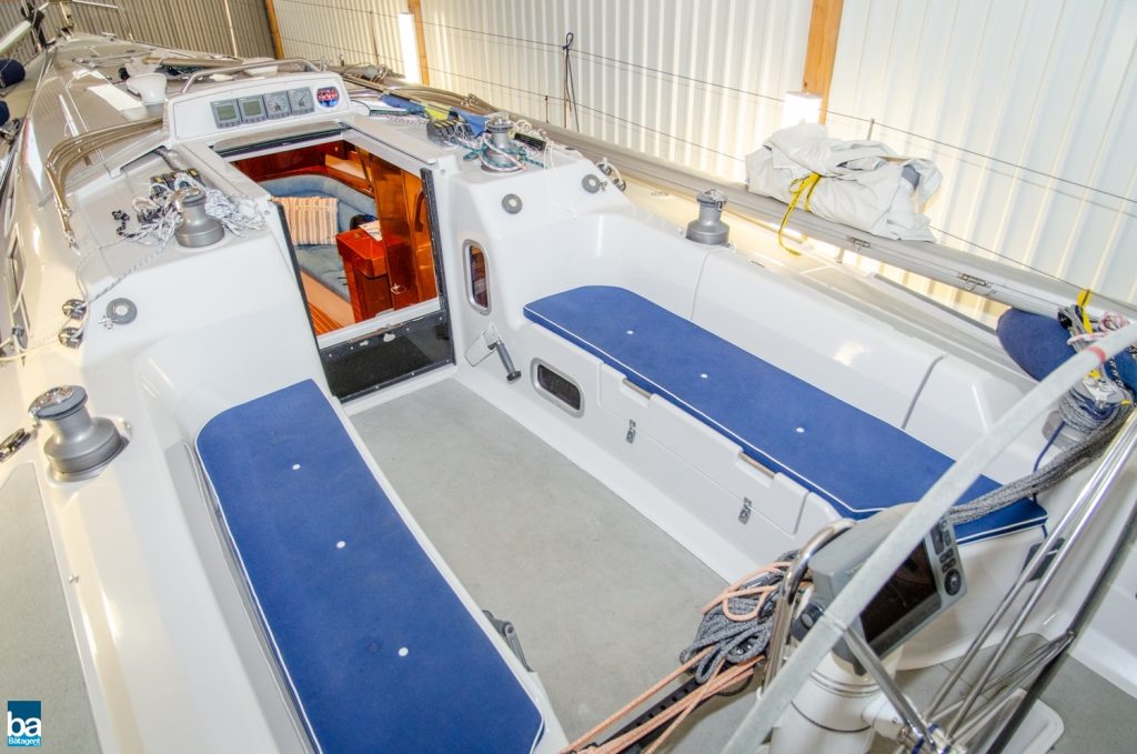 Hjärtat är den väl tilltagna sittbrunnen och alla beslag samt trimfunktioner sitter där de skall och är väl dimensionerade. Rorsman har full kontroll över båten med en väl tilltagen ratt och under semestern finns sprayhood, heltäckande kapell och formsydda dynor till sittbrunnen.