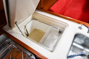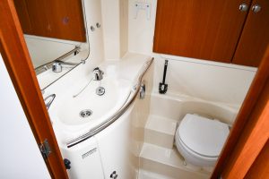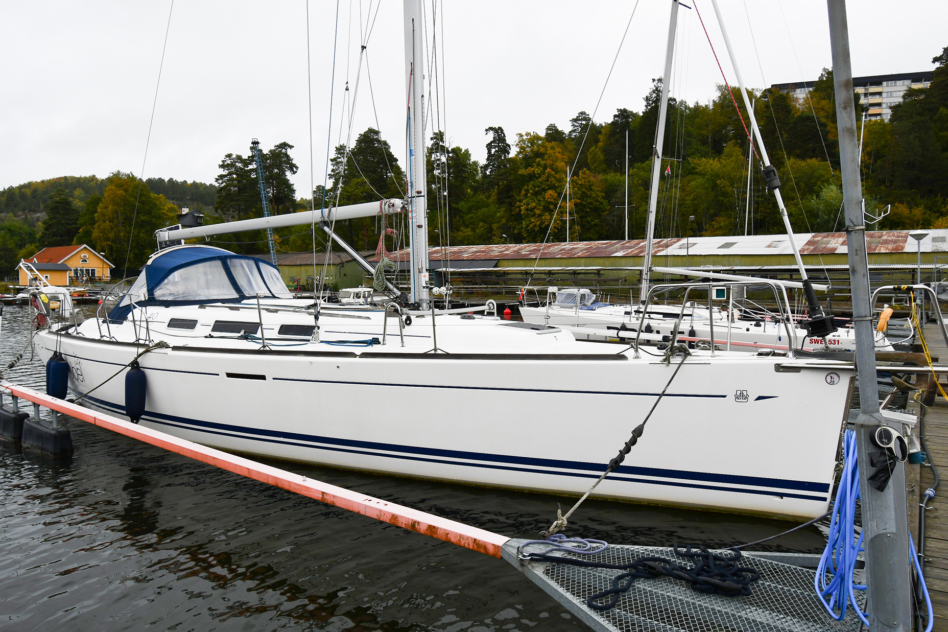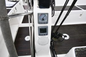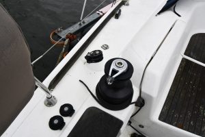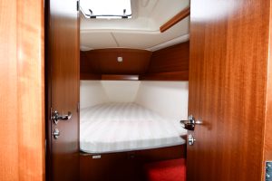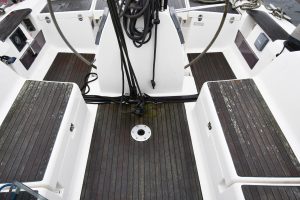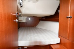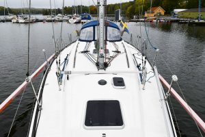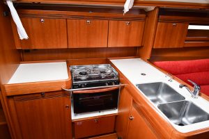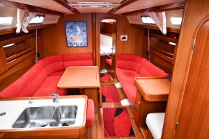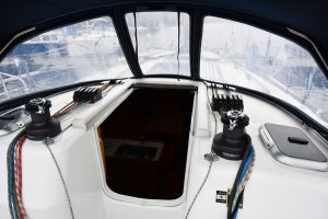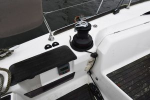 The light and roomy interior has a well-planned three-cabin layout. This particular example comes with two optional electric winches and upgraded sails — in short, a well-equipped yacht ready for new adventures.
