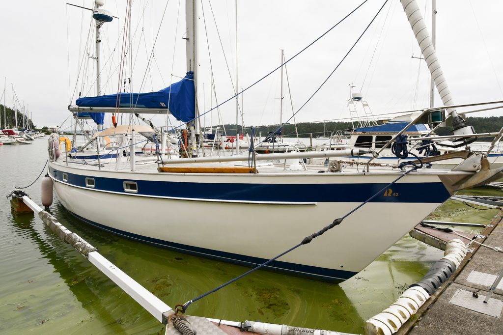 Hallberg-Rassy 42E is admired for its clean flush deck. A large number of 42Es have sailed around the world. The boating magazine Båtnytt wrote the following in issue 11 of 1980: The new Hallberg-Rassy 42E is the flagship of the Swedish boat industry. One cannot sail more majestically. Sailing across the oceans with this magnificent ship should be a true delight!