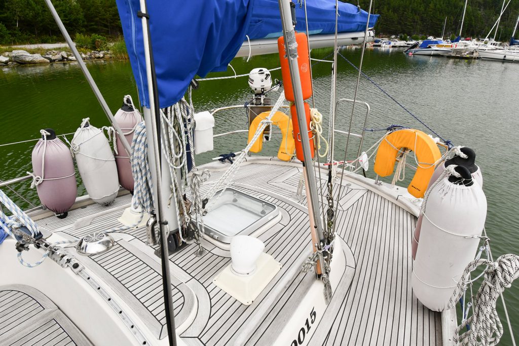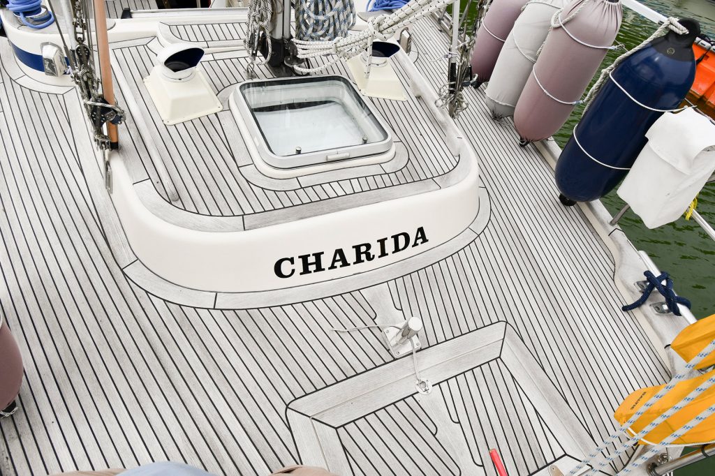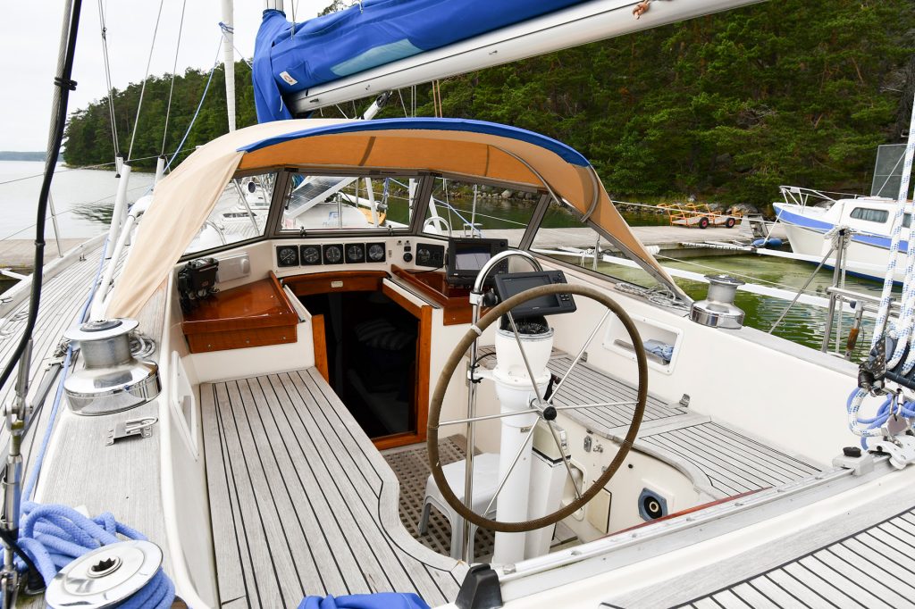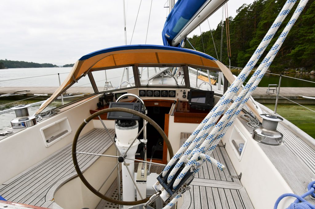 Charida number 32 of a total of 255 built is a boat that has been well cared for by its 2 previous owners. With a replaced engine, a Volvo Penta D2-55F with 434 hours on the clock, and a replaced teak deck, vacuum-glued by Ellös Teakservice in 2007. Naturally, there are some scuffs and scratches. The boat was recently inspected and is considered to be in good condition for its age. With its bow thruster, the boat maneuvers smoothly in harbors. All seacocks and ball valves were replaced in 2017.