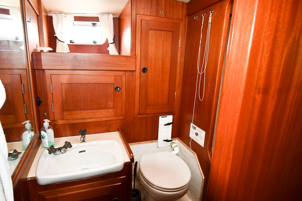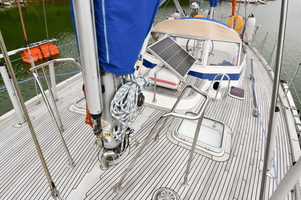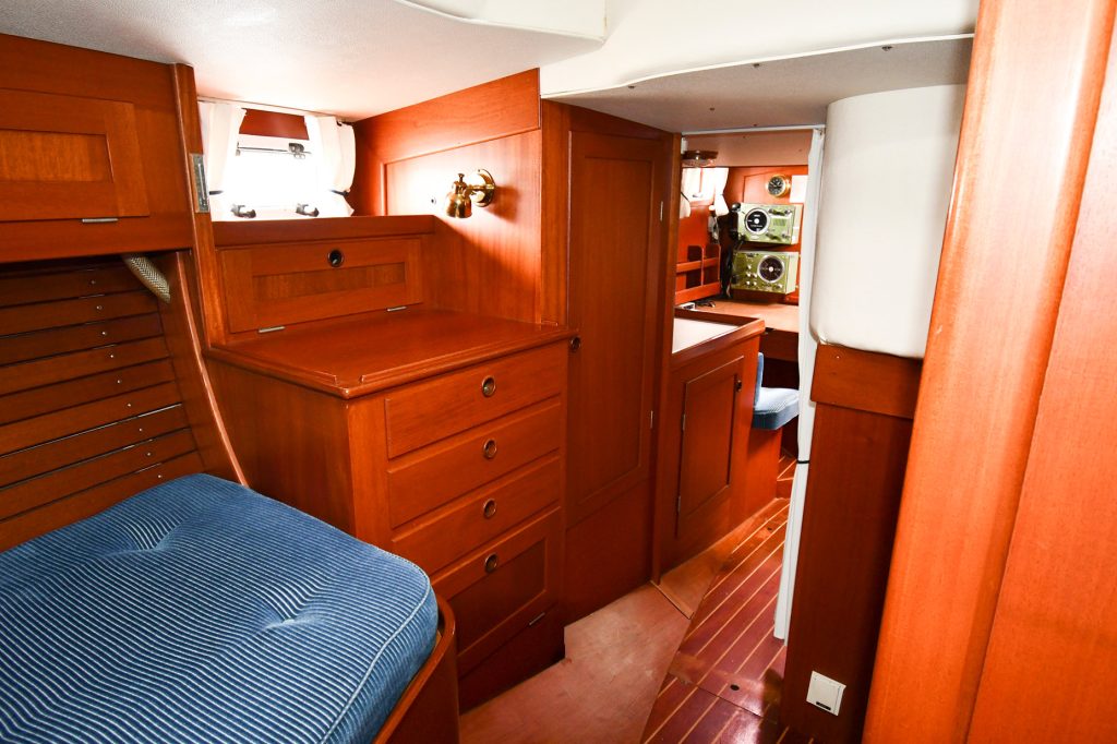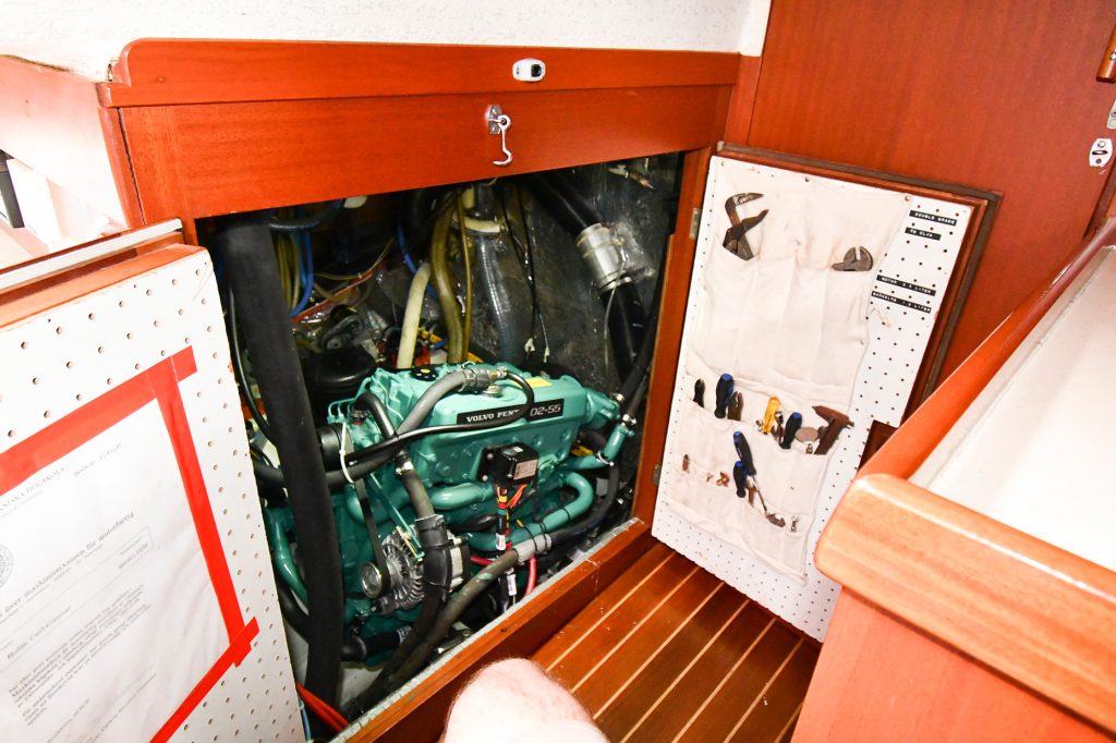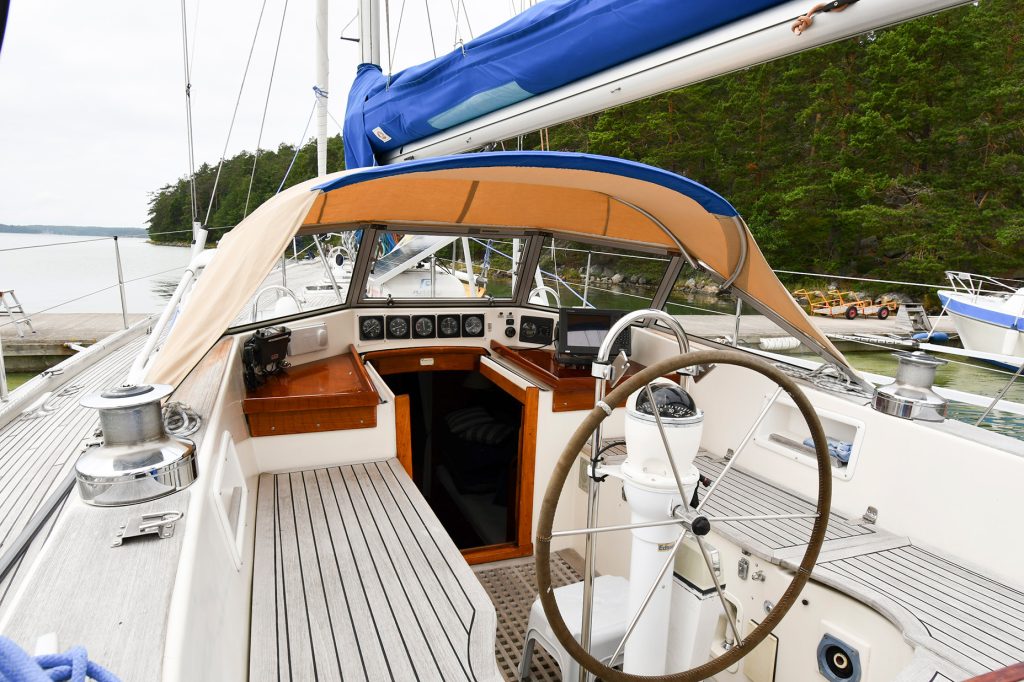 Charida number 32 of a total of 255 built is a boat that has been well cared for by its 2 previous owners. With a replaced engine, a Volvo Penta D2-55F with 434 hours on the clock, and a replaced teak deck, vacuum-glued by Ellös Teakservice in 2007. Naturally, there are some scuffs and scratches. The boat was recently inspected and is considered to be in good condition for its age. With its bow thruster, the boat maneuvers smoothly in harbors. All seacocks and ball valves were replaced in 2017.