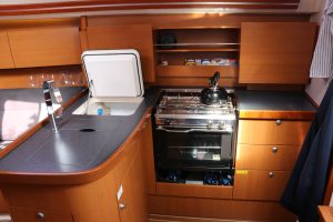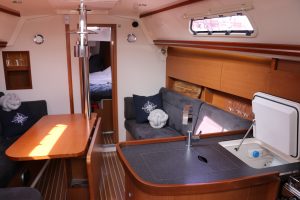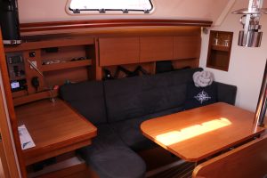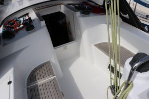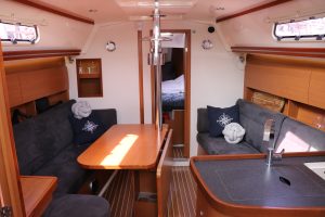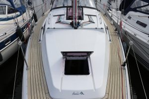 Very modern, seaworthy sailboat with her clean lines, spacious cockpit and easy-to-handle sail plan, she is ideal for both novice and experienced sailors. Inside, the Hanse 355 offers a surprising amount of living space, with a bright saloon, well-equipped galley and comfortable sleeping quarters. The steering position is clear and the boat is instantly responsive, making for an enjoyable sailing experience