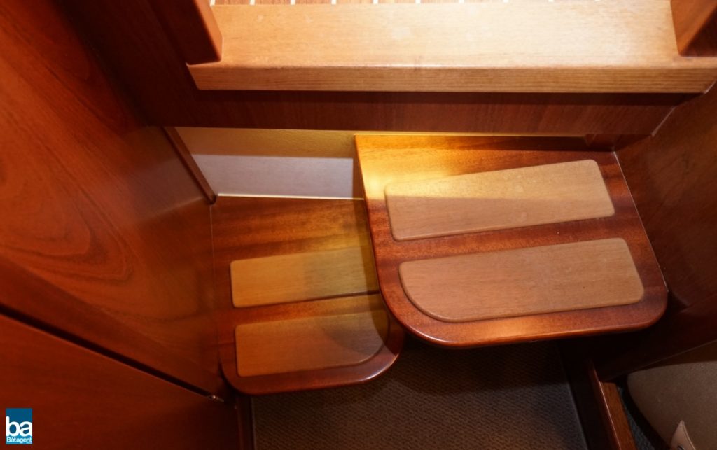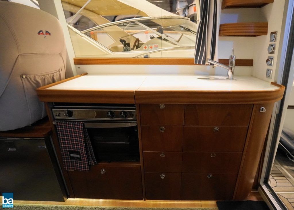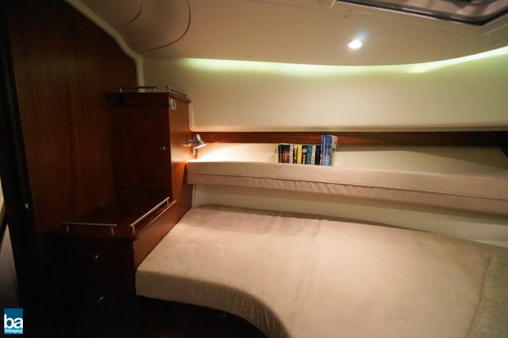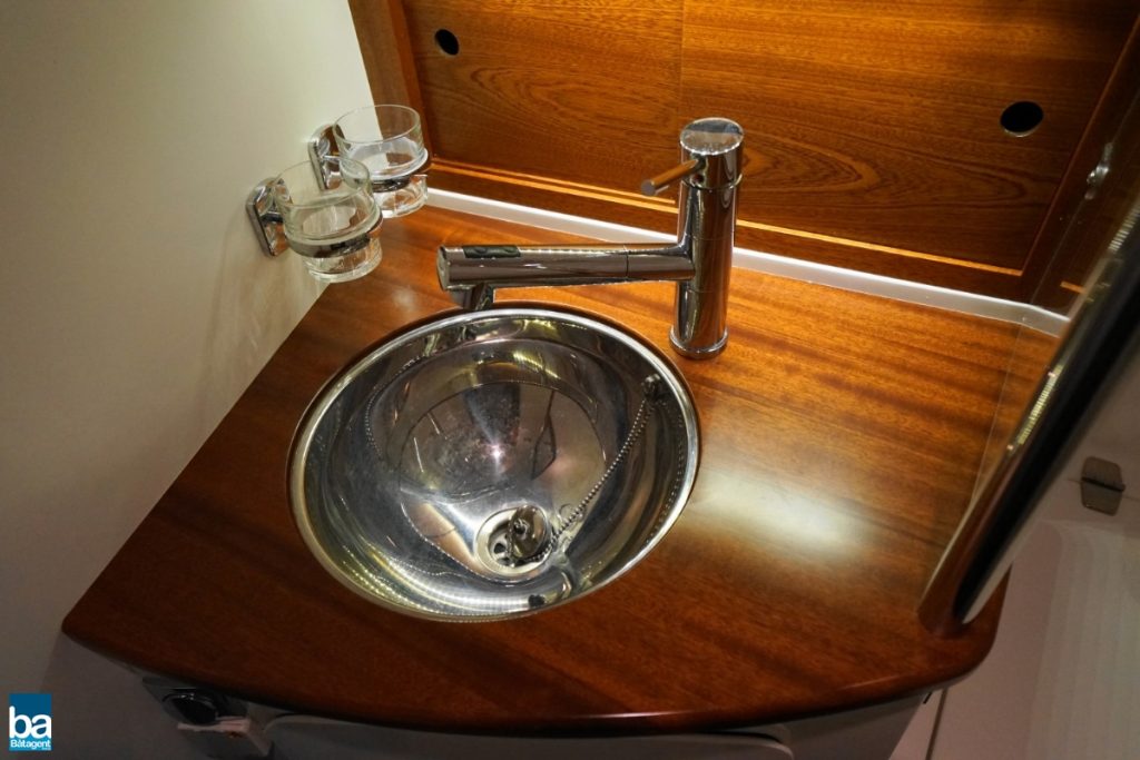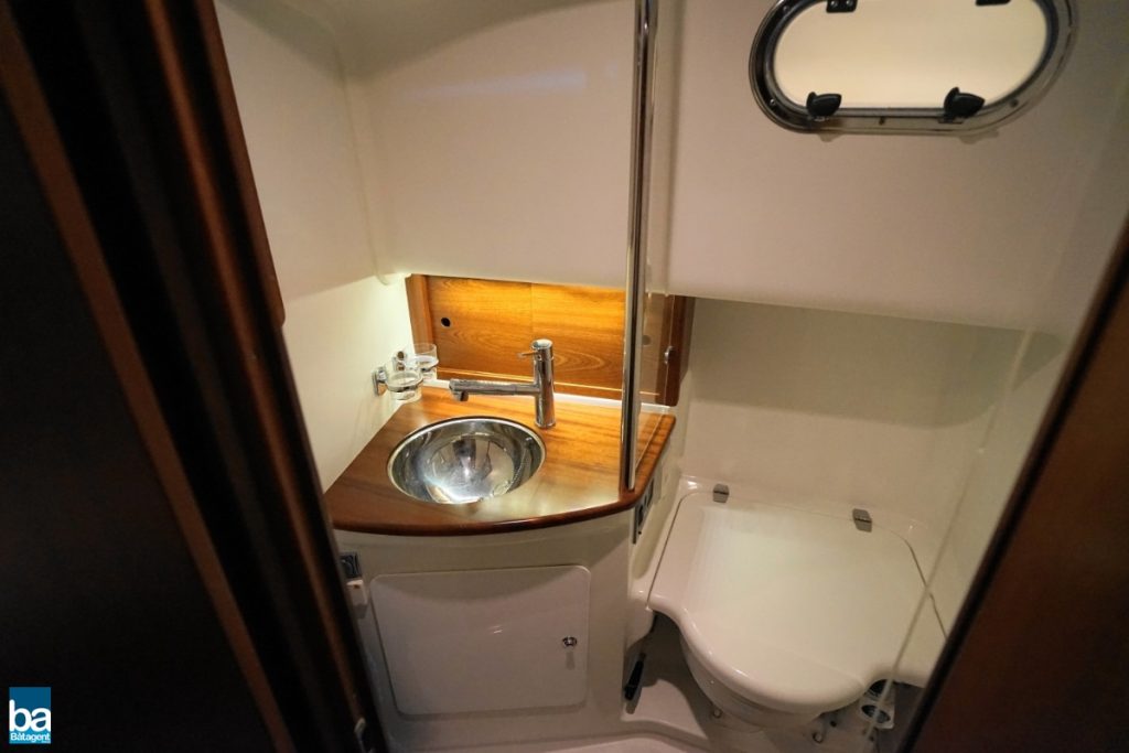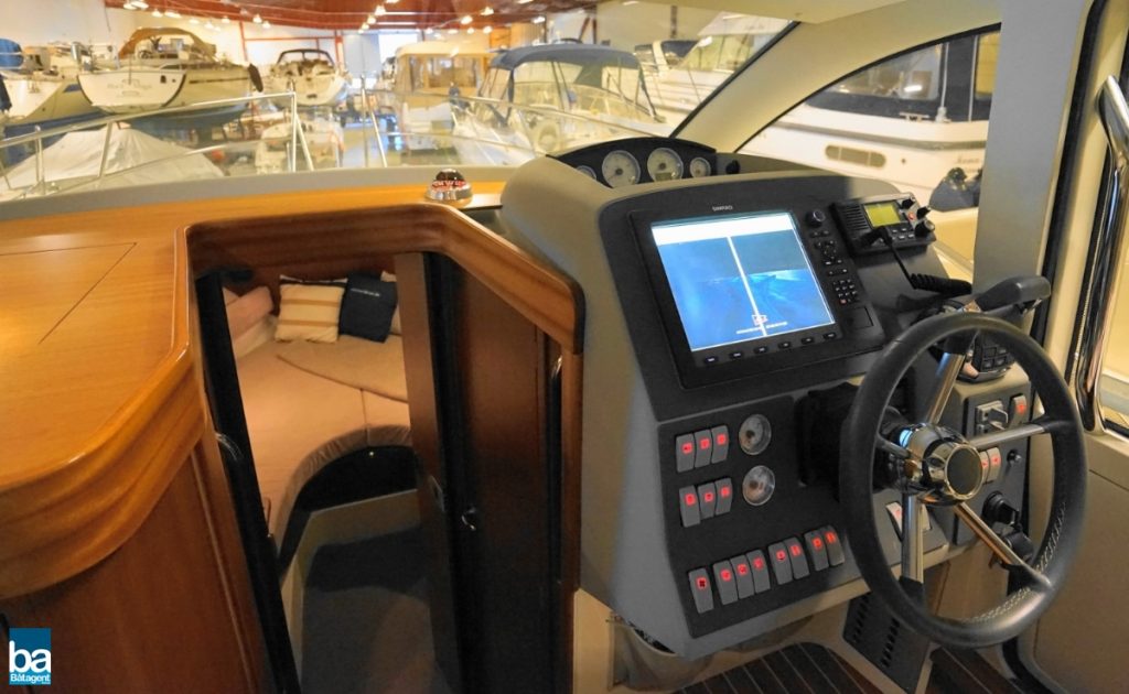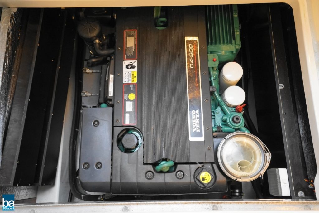 Här finns goda innerutrymmen med all bekvämlighet man kan önska sig. Med hjälp av kapell och stora takluckor i glas kan båten både vara öppen mot den vackra svenska sommaren likaväl som stängd och skyddad mot dåligt väder.