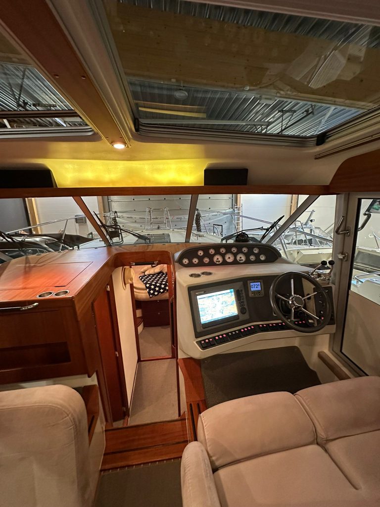 The boat has been professionally serviced annually and stored in a heated indoor facility. The hull was repainted white in 2021, making it easy to keep glossy and in like-new condition with regular waxing.