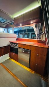 Galley with stove/oven, refrigerator, sink, and hot & cold pressurized water