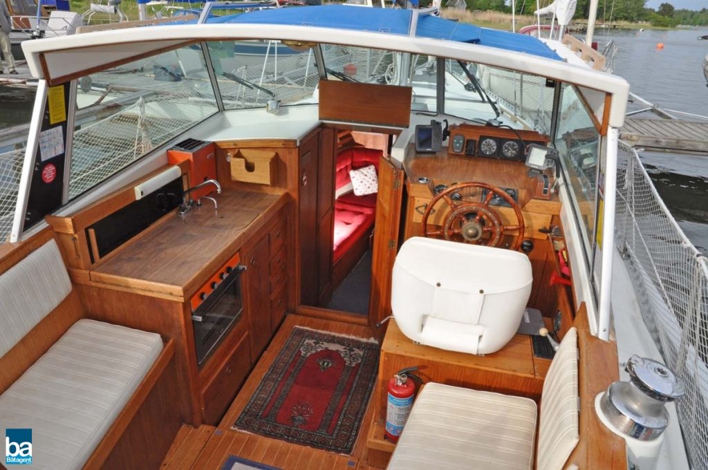 En rymlig motorseglare med för- och akterruff och en dubbelkoj om SB under sittbrunnen i bra skick. Pentry med 2-lågigt gasolkök och ugn, diskbänk och kylskåp i sittbrunn under tak. Gott om sittplatser i sittbrunnen. I den förliga salongen finns rymligt WC med tvättställ och 2 sovplatser samt ingång till en stickkoj med två sovplatser under sitttbrunnen. I aktersalongen finns 2 separat kojer. Denna båt har uppgraderats på många väsentliga punkter de senaste åren.